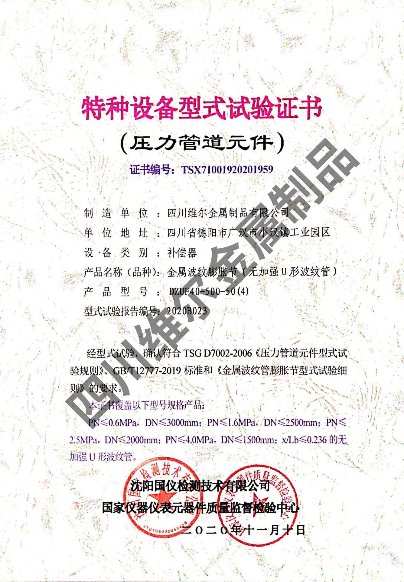 特种设备型式试验证书